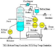 Goals: Distillation columns consume so much energy that it contributes to more than 50% of plant operating costs. It is desirable to tightly control bottom and tray temperatures to optimize separation, avoid flooding, minimize steam consumption, and maximize yield.
