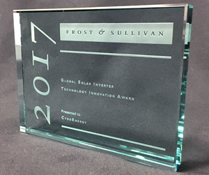 CyboEnergy received Frost & Sullivan's 2017 “Global Solar Inverter Technology Innovation Award”, recognizing its achievements and excellence in innovation, leadership, and growth. |