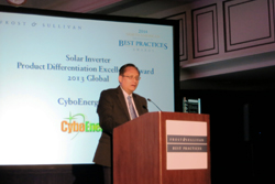 | CyboEnergy is the recipient of Frost & Sullivan’s 2013 Global Product Differentiation Excellence Award in Solar Inverters. The award recognizes CyboEnergy’s innovation of CyboInverter. |