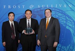 CyboSoft's Dr. Carl Hsu and Dr. George Cheng receiving Frost & Sullivan Award with Art Robbins, Frost & Sullivan, North American President. |