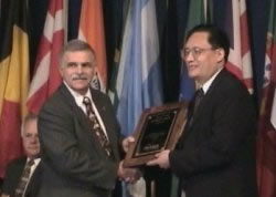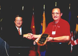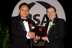 | Dr. George Cheng receives ISA Fellow Plaque from ISA President Nelson Ninin at the ISA 2010 Honors & Awards Gala. |