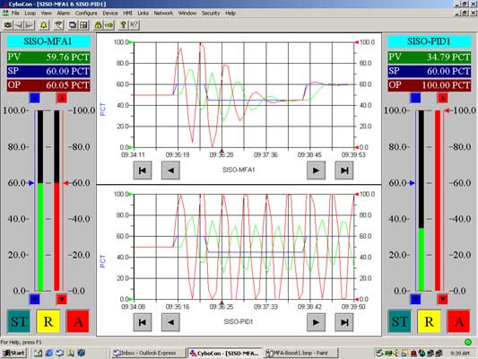 MFA (top) and PID (bottom) controllers is compared in