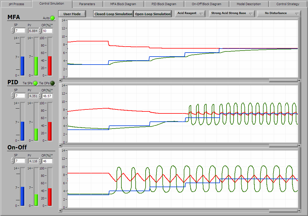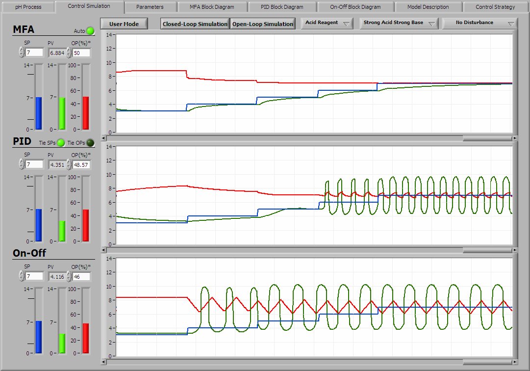 MFA, PID, and On-Off Control Real-Time Simulation for pH Process
