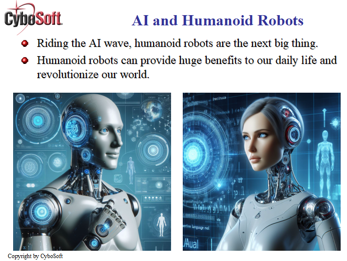 CyboSoft CEO Dr. George Cheng said, “Riding the AI wave, humanoid robots are the next big thing that can provide huge benefits to our daily lives and revolutionize our world. Enabled by large language models and generative AI, humanoid robots could potentially mimic human behavior, respond to natural language commands, express emotions, and perform human-like tasks. However, AI is only the first half of the puzzle. The second half is connecting the robot to the physical world. A humanoid robot still needs to know how to walk, run, climb stairs, hold objects, move things around, and talk like a human. Smart sensors and controls are critical elements for humanoid robots to navigate and interact with the physical environment."